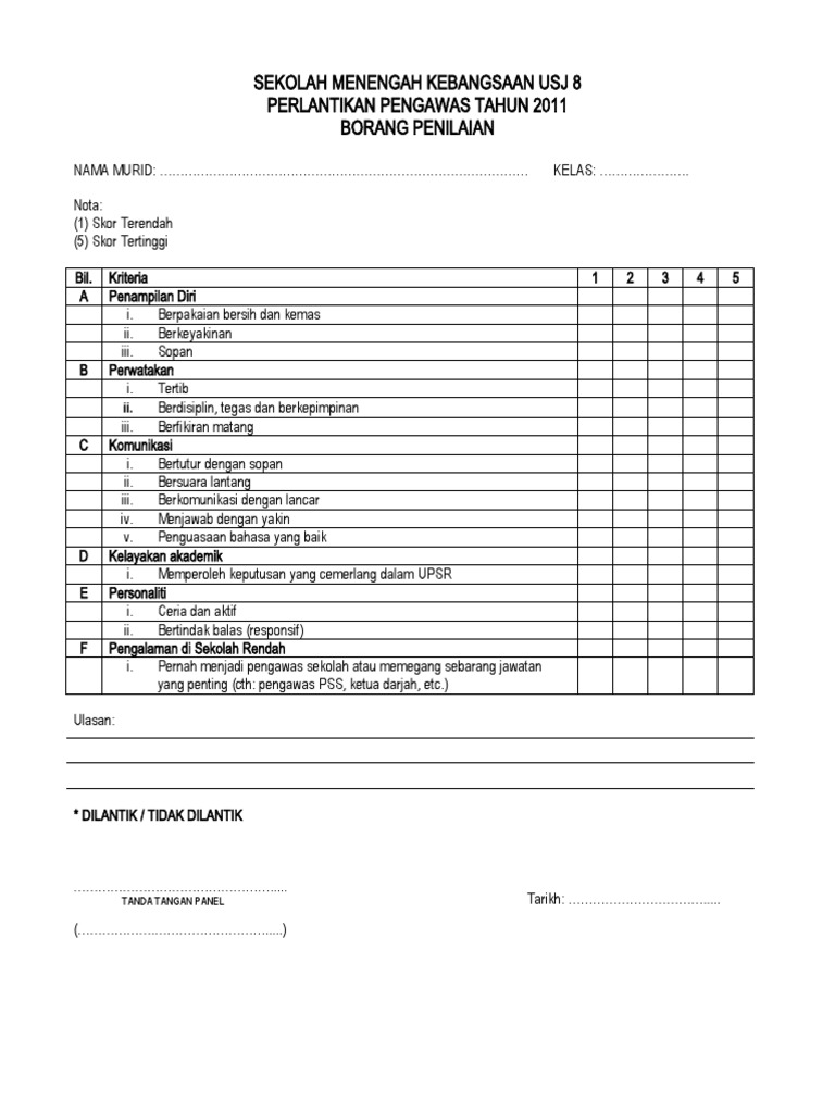 Borang Penilaian Temuduga Pdf
